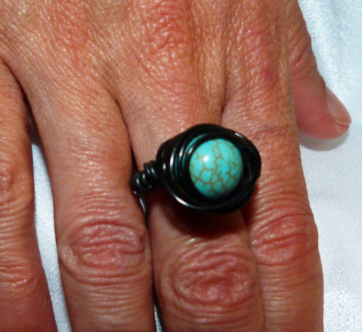 0030-Anillo circular cobre, azul y morado con dos bolas plateadas